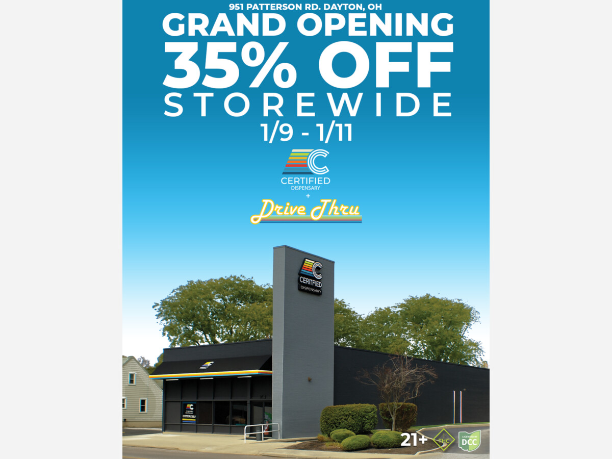 DAYTON, Ohio – [1/7/2025] — CERTIFIED, a family-owned, vertically integrated Ohio cannabis company, has officially opened its newest dispensary at 951 Patterson Road in the Oakwood area of Dayton. Situated at the corner of Wilmington Avenue and Patterson Road,in the former Key Bank building, the location is next to Tim Hortons and directly across from Patterson Pub.